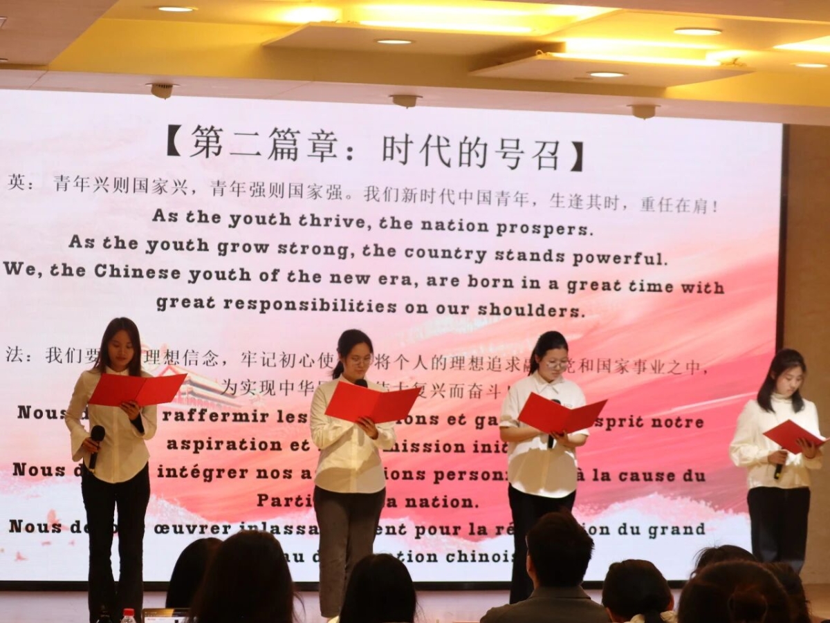2025年11月21日,学员参与第十一期“青马学堂”结业仪式暨第八届“外语诵中国”汇报展演活动,立足专业特色传承以爱国主义为核心的民族精神,在形式多样的汇演中强化对革命精神与党的创新理论的理解。
