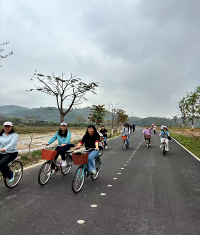 活动伊始,大家奔赴罗浮山显岗水库——这片藏在罗浮山腹地的生态秘境,湖水澄澈如镜,周边青山连绵,被誉为广深周边的“天然氧吧”与“小洱海”。在这片青山绿水间,大家骑着单车沿湖而行,微风裹挟着草木与湖水的清新气息拂面而来,沿途竹林、湿地错落有致,目之所及皆是春日盛景。骑行过程中,大家相互陪伴、欢声笑语,既锻炼了身体,又在自然景致中释放了工作的疲惫,尽情享受着春日骑行的惬意与自在。