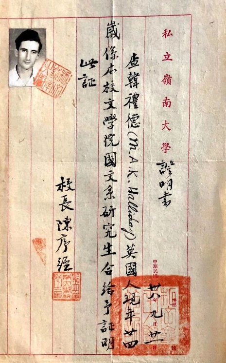 韩礼德教授热爱中国,与中国有不解之缘。2013 年 9 月下旬,我和黄国文教授陪先生去湖南访问。在湘潭大学讲学时,先生提出想去毛泽东主席故居参观。因黄国文教授赶回广州参加公务活动,我和先生的儿子 Neil 陪韩礼德教授一同前往。在博物馆里,先生对每一件展品都看得很仔细,尤其是在看到毛主席学外语用到的材料时,他表现出极大的兴趣。途中,先生谈及他上世纪 40 年代中期在英军做情报工作的经历。他回忆说,当时国民党和共产党的情报他都能接触到,通过对比,他发现了中国共产党的先进性,确信这是一个真正为中国、为人民大众服务的政党。事实上,中国革命和马克思主义思想对先生产生了深远的影响,包括他后来积极参与英国马克思主义语言小组的活动,提出“适用语言学”的思想,强调将语言学应用于其社会环境之中的重要性,应该把语言学当作一种干预方式,进行批判性社会活动,注重语言学和语言学家的社会责任,等等。他自己的职业生涯也因为他的信仰受到影响,包括获聘不列颠哥伦比亚大学语言学系教授、系主任后被加拿大政府拒绝入境签证。