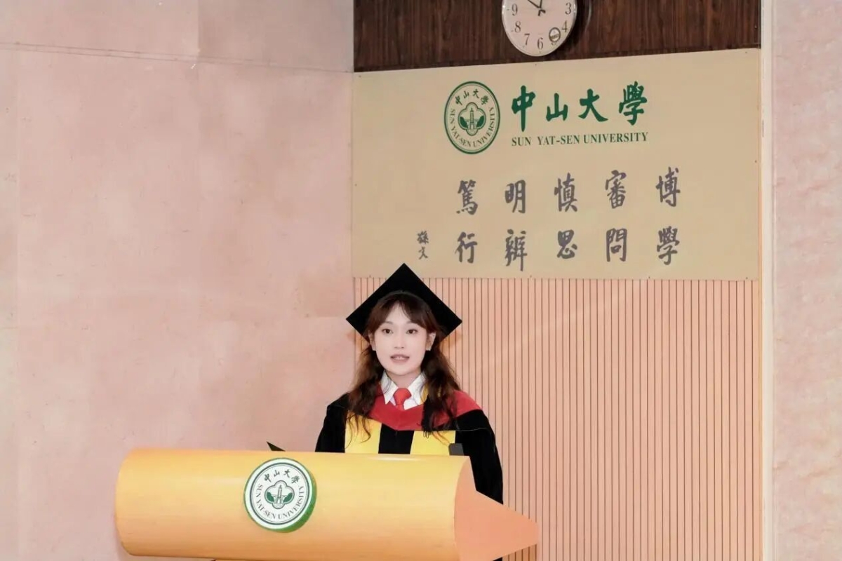 2021级外国语言文学专业博士研究生毕业生代表高楠发言。他以乔布斯的“连接点”“爱与失去”“生命轮回”三个故事为脉络,分享读博四年的成长感悟。他谈到,初入学术门径时曾在文献研读、组会汇报中屡屡碰壁,但正是这些看似零散的努力最终构筑了知识根基,印证了“当下积累终将串联成未来方向”的真理;面对科研路上的拒稿与失败,支撑他走下去的是“跌倒后仍选择站起”的信念,呼吁师弟师妹善待逆境中坚持的自己;在时代焦虑与现实压力下,他以“生命有限”警示勿困于外界评价,应倾听内心声音,忠于本心选择。最后,他寄语毕业生们相信努力的意义,在低谷中坚守自我,以清醒笃定的姿态奔赴未来,让康乐园的奋斗岁月成为照亮人生的星光。
