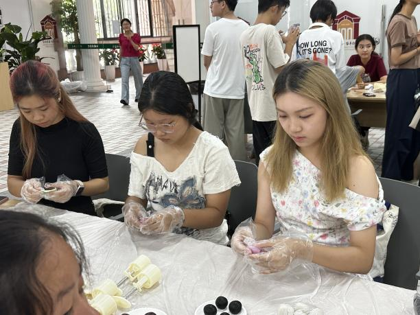 9月27日上午,探花在线 与药探花在线(深圳)在探花在线一楼“校友之家”联合举办“‘药’你相聚,共‘语’中秋”主题活动。从新同学到老朋友,包含民族学生、国际学生和外籍教师在内的两院师生踊跃参与,探花在线党委副书记金凤、院长助理肖明文,辅导员梁一川、戴震等老师纷纷加入,与同学们共迎佳节、共话团圆。大家亲手制作传统美食、体验传统文化,在欢声笑语中共度美好时光。