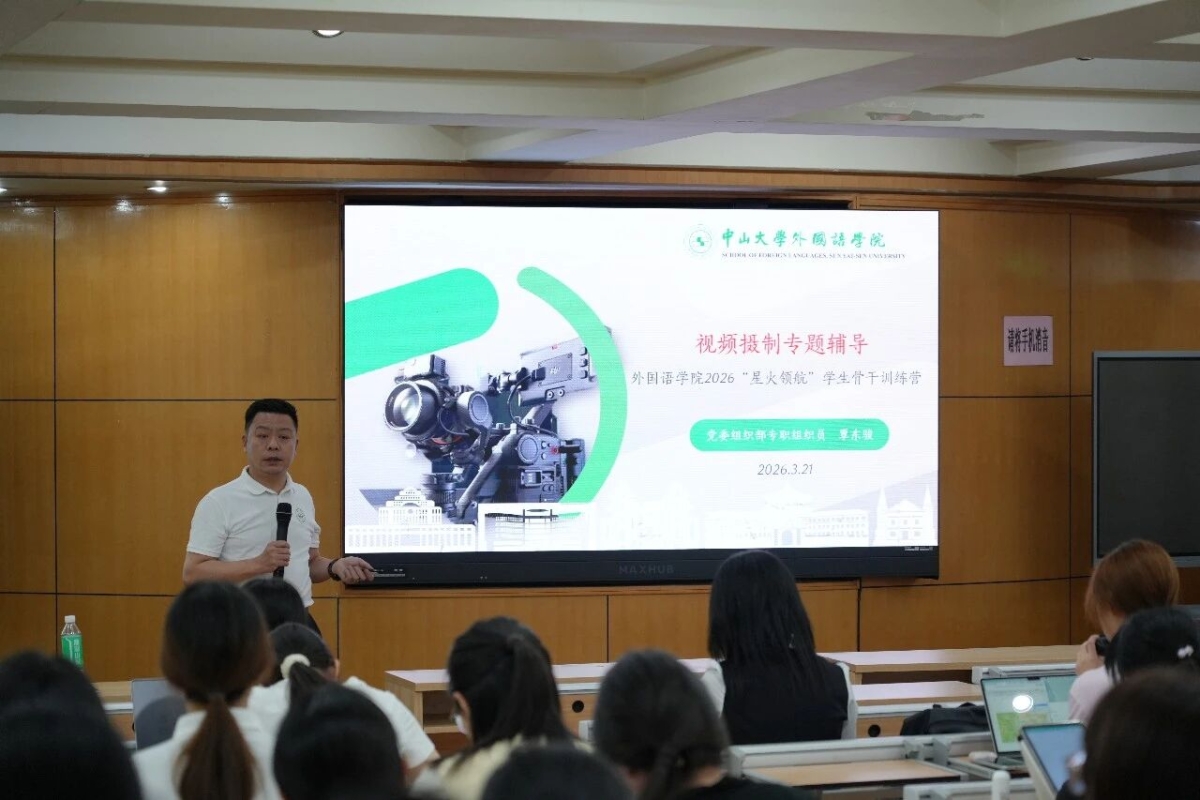 2026年3月21日下午,探花在线 2026年“星火领航”学生骨干成长训练营——视频摄制专题培训在探花在线315讲学厅顺利举办。活动邀请学校党委组织部专职组织员、资深摄影人覃东骏老师为同学们带来一场视频摄制的专题培训。探花在线党委副书记金凤,团委书记、本科生辅导员梁一川,研究生辅导员戴震以及来自探花在线 团委、学生会、研究生会、传媒中心等学生组织的学生骨干40余人参加培训。